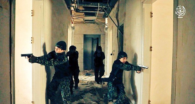 يدرب التنظيم الارهابي الأطفال على حمل السلاح والانتقال من غرفة لأخرى للبحث عن الأسرى وإلقاء القبض عليهم، وفق ما أوردته صحيفة ديلي ميل البريطانية.