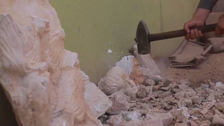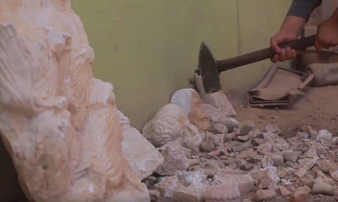 ونشر الفيديو، الذي تداولته مواقع التواصل الاجتماعي، تحت عنوان "ديرالزور.. تحطيم تماثيل عثرت عليها هيئة الآثار في منطقة الصالحية غرب البوكمال" الواقعة على الحدود العراقية. وتحدث أحد عناصر التنظيم في الفيديو وهو يقول :"إن ما تسمى بـ "اللجنة الشرعية" ارتأت تحطيمها، كونها "أوثاناً تعبد من دون الله".
