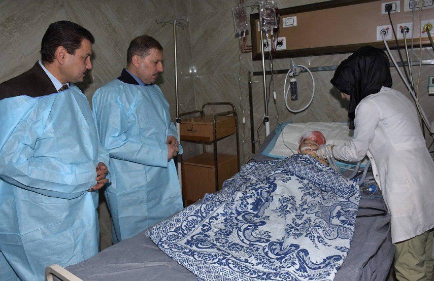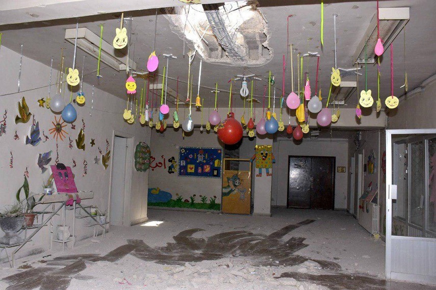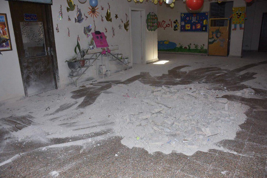 قام الارهابيون المسلحون بالاعتداء بالقذائف الصاروخية باستهداف المدنيين في شارع النيل بمدينة حلب .