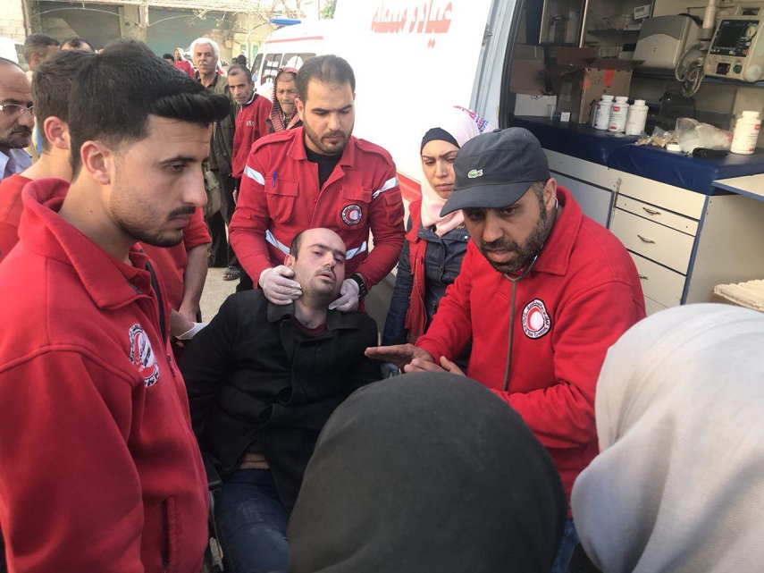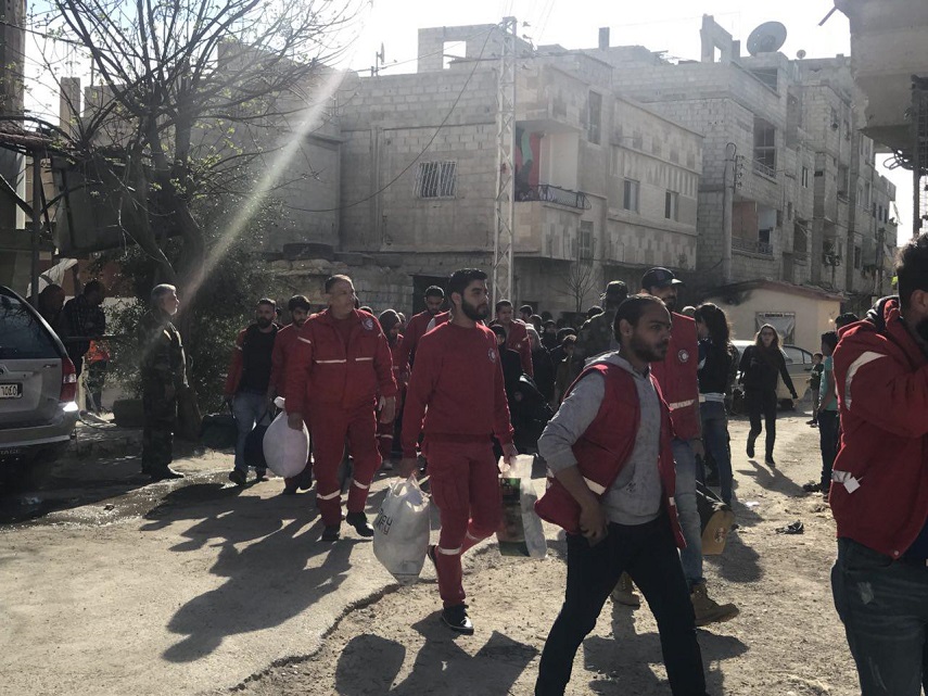بدأت الطواقم الطبية السورية بتقديم الاسعافات الاولية للحالات المرضيه والجرحى بين المدنيين الخارحين من الغوطة الشرقية.