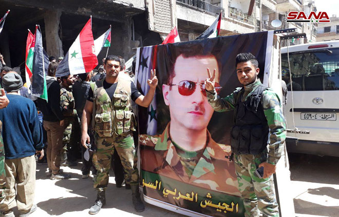 وأعلنت مدينة حرستا في الغوطة الشرقية بريف دمشق في الـ 23 من آذار الماضي خالية من أي وجود ارهابي بعد إخراج المسلحين وعائلاتهم الرافضين للمصالحة إلى محافظة ادلب بعد استكمال تسليم أسلحتهم الثقيلة قبيل مغادرتهم المدينة.