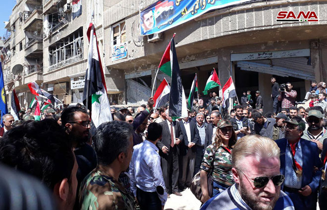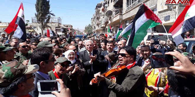 وأكد عدد من الفنانين أن زيارتهم إلى مدينة حرستا بعد سنوات عانت فيها من اعتداءات التنظيمات الارهابية التي اتخذت أهلها دروعا بشرية هدفها الوقوف مع المواطنين الذين صمدوا وتمسكوا بوطنهم وبث الأمل في نفوس الأهالي ودعوتهم إلى العودة إلى منازلهم للتعاون مع الجهات المعنية لإعادة الحياة الطبيعية إلى المدينة التي طالما كانت عنوانا للحياة الآمنة.