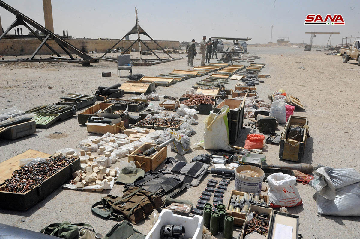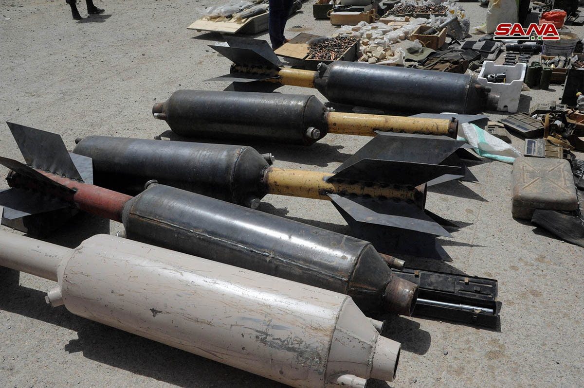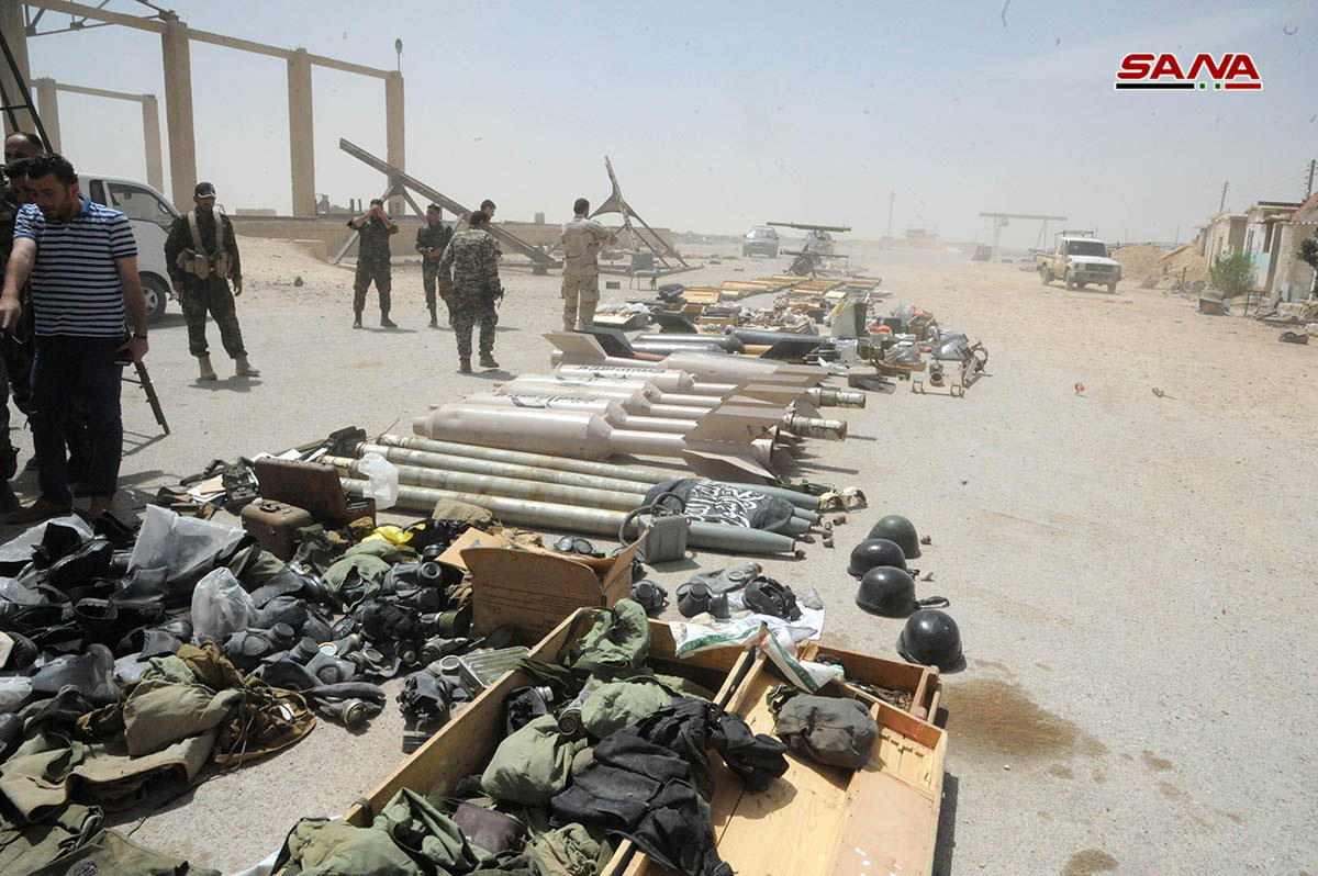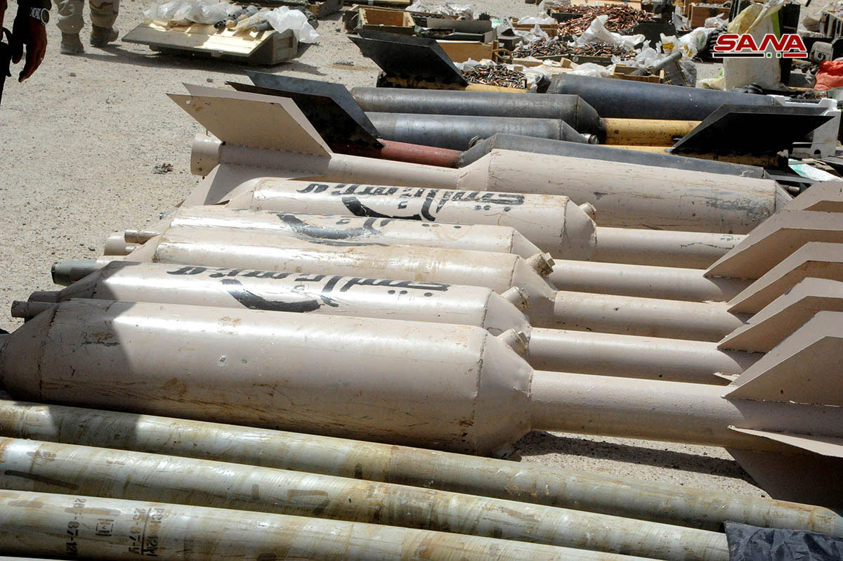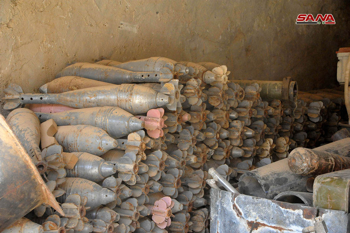 عثرت وحدات من الجيش العربي السوري اثناء تمشيط بلدة الضمير بعد إخراج إرهابيي “جيش الإسلام” إلى جرابلس على كميات كبيرة من الأسلحة والذخائر المتنوعة التي كان إرهابيو التنظيم قد أخفوها في أحد المستودعات في منطقة المحطة بالبلدة. وذكر مراسل سانا الحربي من ريف دمشق أن وحدات من الجيش ضبطت أثناء تمشيطها بلدة الضمير كميات من الأسلحة والذخائر والعتاد الحربي لإرهابيي “جيش الإسلام” في منطقة المحطة جنوب البلدة شملت صواريخ محلية الصنع وصواريخ “غراد” وأعدادا كبيرة من القذائف الصاروخية والهاون وعشرات العبوات الناسفة وقذائف “آر بي جي” وعددا من صواريخ “تاو” الأمريكية والألغام والصفائح المتفجرة وأجهزة تفجير عن بعد ومنصات اطلاق صواريخ محلية الصنع.