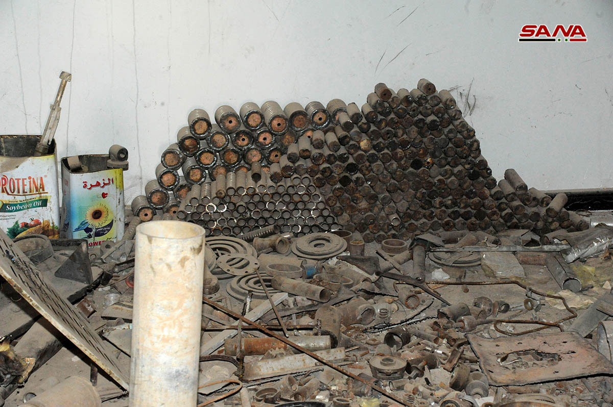 وأفاد المراسل بعثور وحدات الجيش على أحد المقرات الطابقية لمتزعمي “جيش الإسلام” في منطقة المحطة يحتوي على عدد من الغرف في الطوابق العليا بينما يضم الطابق الأرضي ورشات خراطة لتصنيع العبوات الناسفة وبعض القذائف الصاروخية بينما يضم قبو المبنى سجنا مكونا من عدة غرف إضافة إلى بعض الزنازين المنفردة.