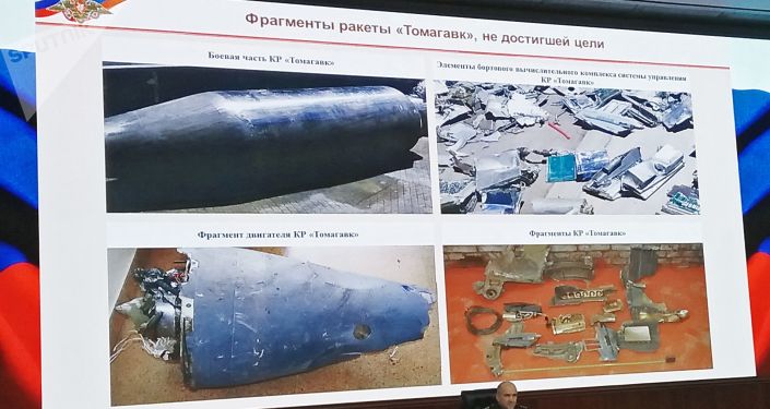 أعلن الخبير في مجال الدفاع الجوي في الأركان الروسية، سيرغي بيزنوغيخ، أن الأركان الروسية عرضت على الصحفيين حطام الصواريخ المجنحة الأمريكية والبريطانية والفرنسية التي ضربت سوريا.