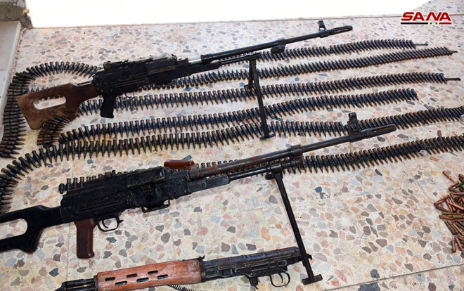 عثرت الجهات المختصة على مستودع للأسلحة والذخيرة من مخلفات الإرهابيين في بلدة عقرب بريف حماة الجنوبي.