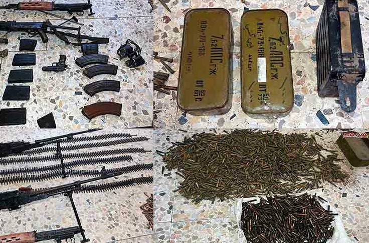 وأشارت وكالة الانباء السورية "سانا" الى أن المستودع يحتوي أسلحة متنوعة بينها قنابل (إسرائيلية) الصنع وبنادق حربية ورشاشات /بي كي سي/ ومسدسات حربية وأجهزة اتصال لاسلكي وذخيرة وقذائف هاون وقناصة.