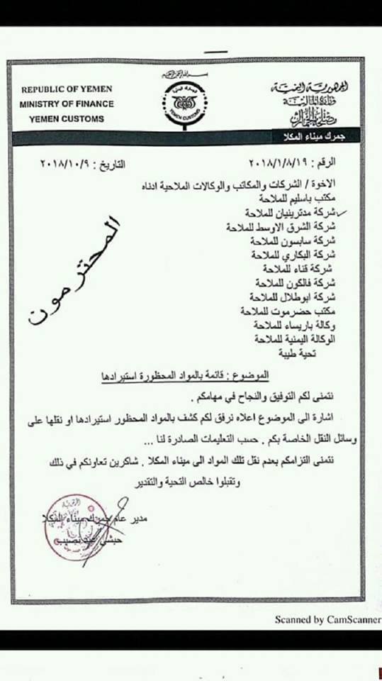 وتضمنت القائمة التي تم تعميمها على المنافذ البحرية والبرية عشرات الأنواع من المواد الحيوية والمرتبطة بإحتياجات المواطن اليمني.