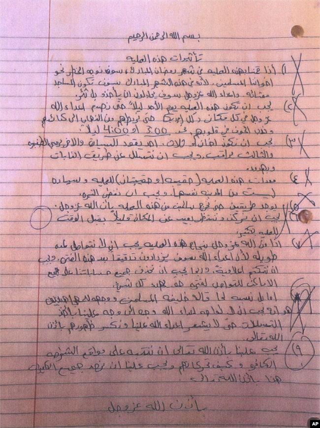 كتب العويمر خطة من 10 نقاط حول طريقة التنفيذ وحول تأثيرات العملية، قال فيها إنه فضل تأجيل الهجوم إلى ما بعد شهر رمضان خوفا من أن "نوجه الخطر إلى إخواننا المسلمين، لأنه في هذا الشهر المبارك سوف تكون المساجد ممتلئة".