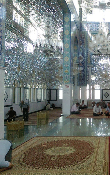 ... الإيمان الطاهر والثبات على خط الله والصراط المستقيم والذي تجلى في أهل بيت النبي الأكرم (صلى الله عليه وآله) هي المبادئ والمشاعر الموحدة لدى ملايين الزوار الذين يأتون أفواجاً أفواجاً وزرافات زرافات لزيارة مرقد السيدة زينب (عليها السلام) عقيلة الطالبيين ورفيقة أخيها أبا عبد الله الحسين (عليه السلام) في ملحمة الطف الخالدة في الشام على خاصرة الغوطة.. على مدار السنة.. يأتون وعلامة اللهفة والشوق الذي يخالجه الحزن والحنين كعلامات لمواساة أحزان العقيلة. من على البعد تطالعك منارتان عاليتان بينهما قبة ذهبية ارتفعت بشموخ على قبر سيدة نساء العالم بعد أمها بضعة رسول الله (صلى الله عليه وآله) فاطمة الزهراء (عليها السلام). هي زينب بنت الإمام الهمام علي بن أبي طالب (عليها السلام).. القادمون هم من مناطق شتى من ارجاء العالم الإسلامي من (لبنان ـ العراق ـ الهند ـ باكستان ـ افغانستان ـ دول الخليج ـ إيران) والمقيمين في البلدان الأوروبية تجدهم وفي فترة الصيف على الخصوص يتواردون لزيارة أم المصائب زينب (عليها السلام) يهزهم الشوق إليها متجشمين عناء السفر بكل صعوباته. جو إيماني رائع يجمع الألوف في سبيل إحياء ذكرى عقيلة بني هاشم (زينب الكبرى عليها السلام) وفي أجواء روحانية، من صلاة ودعاء تشعر وأنت تعيش في كنف هذا الحرم المقدس مع قلوب مؤمنة طاهرة شديدة العلاقة بأهل البيت تشعر وكأنك في محراب عبادة دائم.. حيث يكون المرء أقرب إلى ربه وتكون الصلاة أكثر قبولاً وما أكثر الزوار الذين يلجأون إلى قبر السيدة زينب ويدعون إلى الله أن يقضي حوائجهم ببركة هذه المرأة المؤمنة المجاهدة والصابرة. إنهم ليتشفعون بها إلى الله لكي يجعلهم أكثر إيماناً وتقوى ويحل لهم بعض ما استعصى عليهم من مشاكل الحياة. نعم فإنها دون أدنى ريب شفيعة ومشفعة. تاريخ البناء الحديث في مقام السيدة زينب أعد السيد المهندس محمد رضا مرتضى عام 1952 م مخطط مبنى مقام السيدة زينب الكبرى المتميز بما يلي: 1 ـ المساحة العامة تبلغ أبعادها 150 × 190 م. 2 ـ مساحة المبنى الخاص بالحرم تبلغ أبعادها 90 × 90 م. 3 ـ مساحة الحرم الداخلي تبلغ أبعادها 30 م × 30 م رصفت أرضيته مع أرضية رواقه بالرخام الإيطالي الجميل والنفيس. 4 ـ عرض الفناء الخارجي 15 م يفصل بين رواق الصحن ورواق المقام، يكسوه حجر القطيفاني المجلي الجميل. 5 ـ الاعتماد في عملية التشييد على الخرسانة المسلحة. المداخل الأربعة لمقام السيدة زينب الكبرى لمبنى مقام السيدة زينب الكبرى أربعة مداخل للزائرين، يبلغ عرض كل منها أربعة أمتار، وعلى جانبي كل منها رواق جميل عرضه 4 م. رصفت بالحجر المجلي من نوع البيدروسي والكلسي المتميز بلونه البيج والرمادي الغامق الجميل. وتبدو خلف الرواق سبعون غرفة. واجهاتها بنيت من الحجر البازلتي، تذكرنا بتقاليد بيوت دمشق القديمة المحلية. ويعلو كلاً من أبوابها ونوافذها قوس نصف مستدير مما يذكرنا بجمال العمارة المحلية في قصور دمشق القديمة... مداخل مبنى حرم السيدة زينب الكبرى ولمبنى ضريح السيدة زينب الكبرى أربعة مداخل واسعة وجميلة، يحيط بها رواق عرضه أربعة أمتار، يرتكز سقفه على أقواس متميزة بطابعها المعماري الإسلامي الجميل. سقف الحرم المتدرج في مبنى مقام السيدة زينب الكبرى يتميز سقف الحرم في مبنى مقام السيدة زينب الكبرى بارتفاعه من 6 م عند الجدران الخارجية للحرم حتى ارتفاع 8 م وأخيراً 10 م جوار قبة الحرم التي يبلغ قطرها 10 م. إن سقف الحرم متدرج، يفصل كل درجة عن غيرها سطح زجاجي عمودي من شأنه توفير الإضاءة الطبيعية الكافية والمناسبة، ودخول أشعة الشمس إلى داخل مبنى الحرم، أضف إلى ذلك توفير التهوية الضرورية من مختلف جهات وأطراف مبنى الحرم. استخدام الخزف في تزيين رواق الصحن ورواق الحرم استخدم الخزف الإسلامي الإيراني الجميل بألوانه وعناصره الزخرفية النباتية المتقاطعة والمتتالية وكتاباته الإسلامية القرآنية والأدبية... وذلك في سبيل تزيين واجهات رواق الصحن ورواق الحرم والأعمدة والدعائم والأقواس الحامل