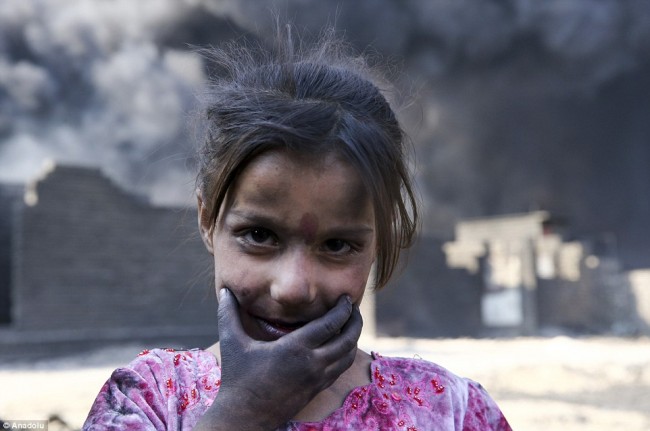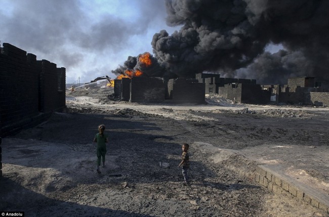 أظهرت صور جديدة بثتها وكالات أنباء عالمية صور أطفال وفتية، في مدينة الموصل شمالي العراق، وقد علت وجوههم طبقات من السواد المنبعث من دخان براميل النفط، التي أشعل تنظيم داعش النار فيها.