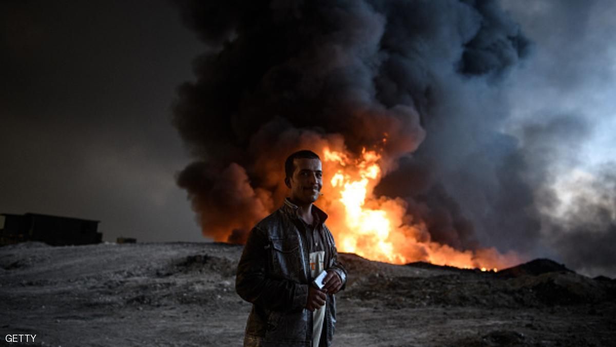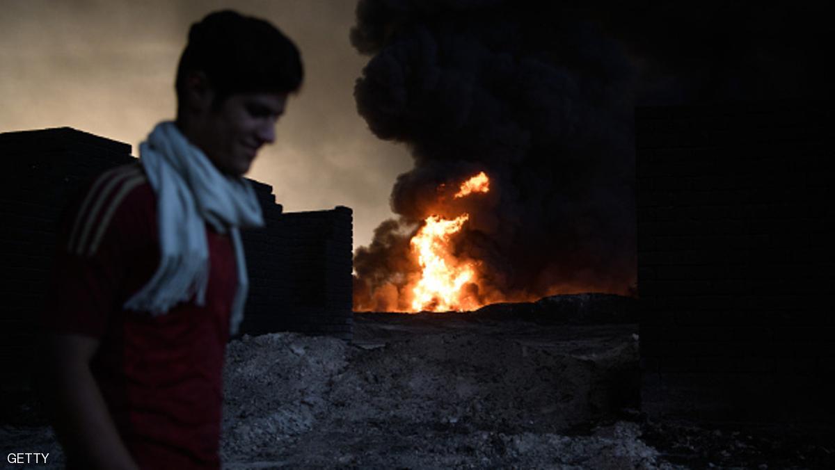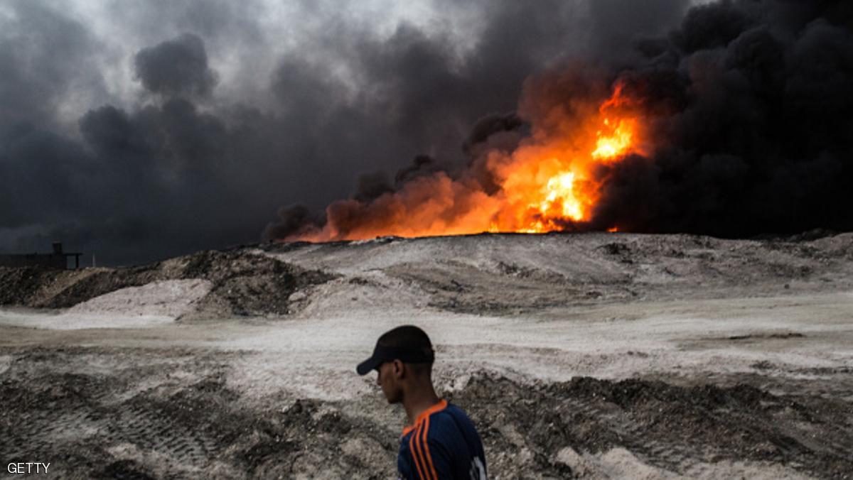 وعلى مدار الأيام القليلة الماضية، عمد مسلحو داعش إلى إضرام النار في براميل النفط في منطقة القيارة القريبة من الموصل، قبل فرارهم مما ترك السكان، ومن بينهم الأطفال، يواجهون كارثة صحية.