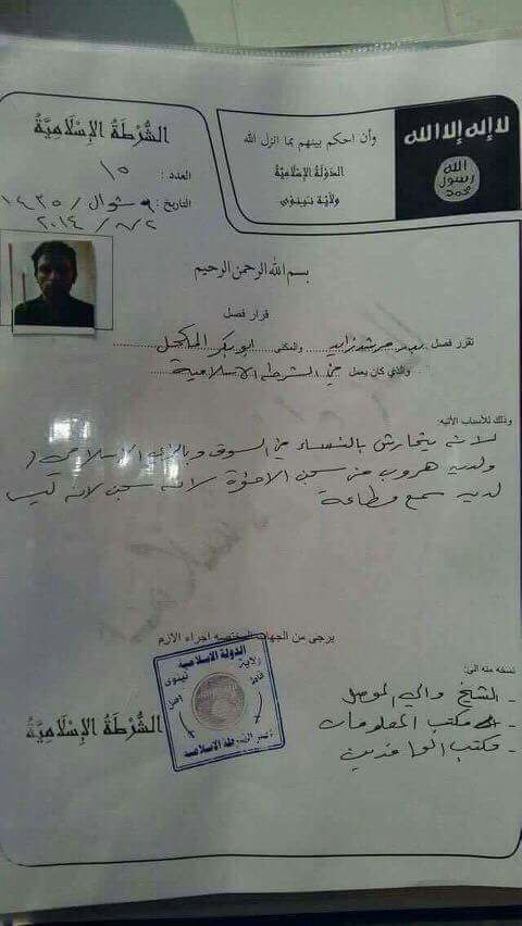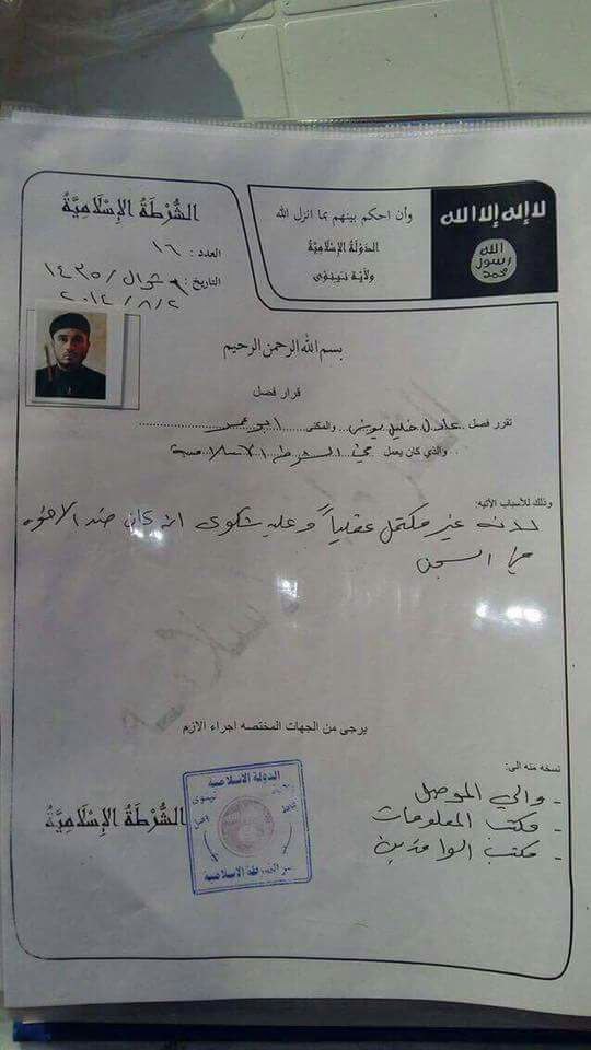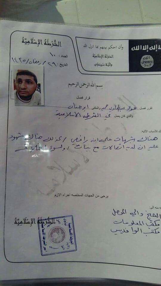 حصلت قناة العالم الإخبارية على صور لأحكام اصدرتها جماعة داعش الارهابية على عناصر شرطتها "الحسبة" تكشف ارتكابهم عمليات تحرش بالاطفال والنساء وشرب الخمور وبيعها.