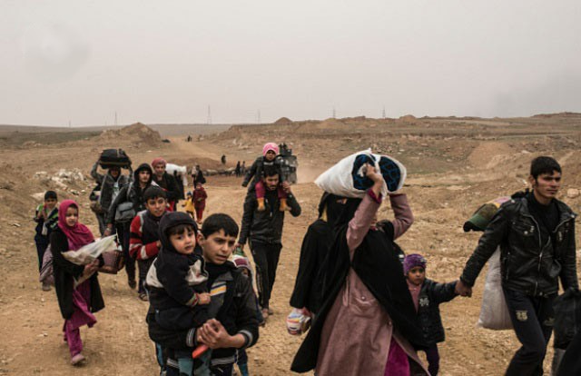 يشار إلى أن نزوح اهالي الموصل يأتي للنجاة من جرائم تنظيم "داعش" الارهابي الذي يعتمد منهج العنف والتطرف والقتل في المناطق التي يسيطر عليها في محاولة منه لبث الرعب بين أهالي المدينة.