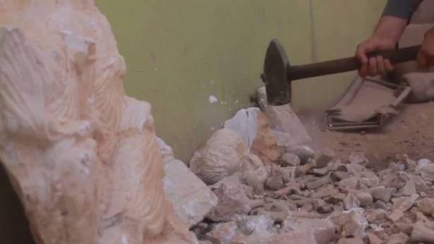 نشر تنظيم "داعش" تسجيل فيديو لعناصره وهم يحطمون قطعا أثرية عثروا