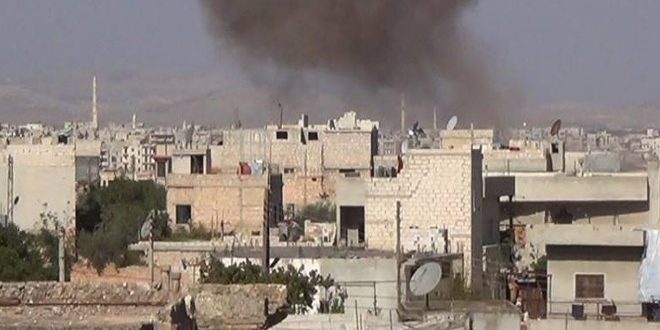 أصيب 4 أشخاص بجروح نتيجة اعتداءات إرهابية بقذائف صاروخية على مدينة محردة بريف حماة الشمالي