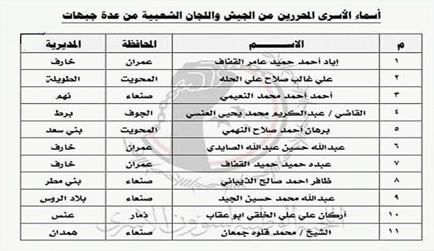 الإفراج عن 11 أسيرا للجيش واللجان بعملية تبادل مع المسلحين