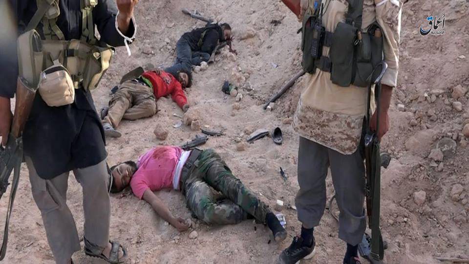 داعش يعلق رؤوس شهداء من قوات الجيش العربي السوري في مدينة الميادين بديرالزور