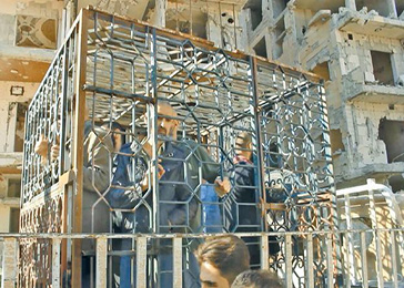 أفادت صفحة «المجلس البلدي لمدينة دوما» على «فايسبوك» أمس بأن «الثوار وضعوا الأسرى من الذين وقعوا في أيديهم في عملياتهم السابقة، في أقفاص نشروها في المناطق السكنية التي تتعرض للقصف دائماً، وذلك استجابةً لمطالب أهالي الغوطة» الشرقية لدمشق. وأضافت: «نشر الثوار في الغوطة منذ أمس مئة قفص، في كل منها حوالى 7 أشخاص، والخطة ماضية لصنع ألف قفص ونشرها في الغوطة الشرقية». ونبّهت إلى أن هذه الخطة تلت تعرُّض دوما لقصف عنيف، آخره الجمعة الماضي حين جرح وقتل أكثر من 600 شخص.