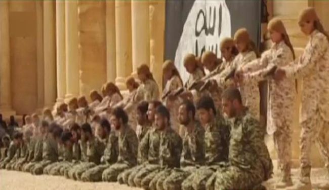 في مجزرة جديدة بثت جماعة داعش فيديو يظهر إعدام 25 عسكرياً سورياً وسط آثار مدينة تدمر، وتحديداً في مسرحها الروماني