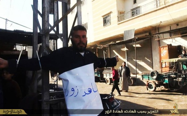 قال المرصد السوري لحقوق الإنسان، إن تنظيم الدولة الإسلامية (داعش) قام بصلب ثلاثة مواطنين في إحدى الساحات العامة بمدينة تل أبيض في ريف الرقة الشمالي بتهمة "شهادة الزور".