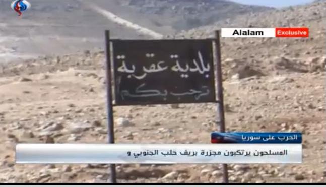 ارتكبت المجموعات المسلحة في سوريا مجزرة بحق المدنيين في قرية عقربة بريف حلب الجنوبي وأَحرقت بعض البيوت