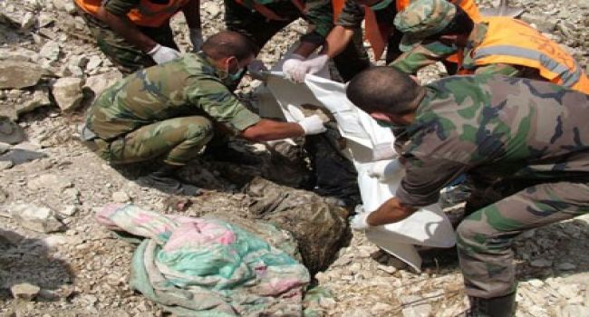 أفاد مراسل تسنيم بأن وحدات من الجيش السوري اكتشفت مقبرة جماعية في مدينة "عدرا العمالية "بريف دمشق تضم رفات أكثر من ۵۰ شهيداً من العسكريين والمدنيين