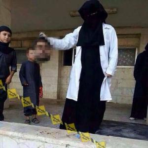 نشرت طبيبة يقال انها بريطانية والتحقت بصفوف "داعش"، صورة لها وهي تحمل رأس قتيل. اسمها "مجاهدة بنت عثمان" وفق الحساب الخاص الذي نشرت عليه الصورة