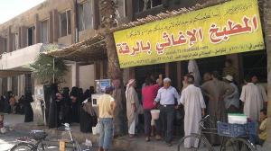 في "دولة البغدادي" المزعومة، يصطف الناس عبر طوابير طويلة أمام "مطبخ" أصبح بالنسبة لهم الملاذ الوحيد لاسكات جوع أطفالهم