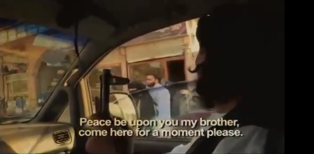 بالفيديو داعشيي يوقف رجلا بالشارع ويأمره بتعديل لباس زوجته وان يصنها