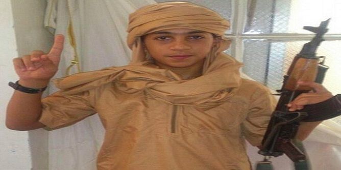 تناقلت شبكات التواصل الاجتماعي صور يونس أباعود البالغ من العمر 13 عاما يحمل بندقية أوتوماتيكية،