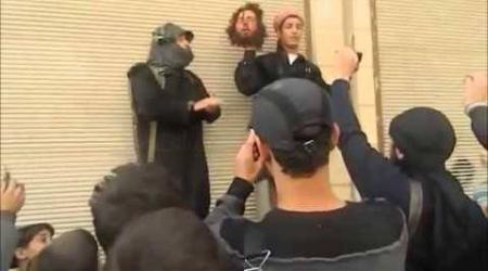 فيديو قاسي جداً+18- مقاتل من "داعش" يحمل رأس شخص من الجيش الحر بعد قطعها