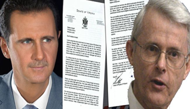 ارسل السيناتور الأميركي ريتشارد هـ. بلاك (سيناتور فرجينيا) رسالة للرئيس السوري بشار الأسد يشكر فيها الجيش السوري على بطولاته في مكافحة الارهاب.