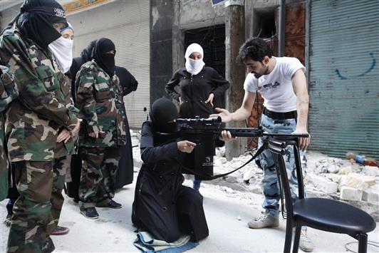 نشرت صفحات تابعة للمعارضة السورية مقطع فيديو يظهر كتيبة مسلحة مؤلفة من النساء
