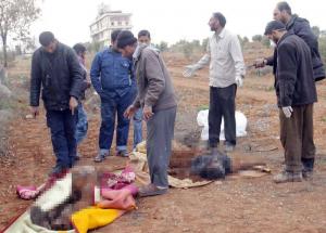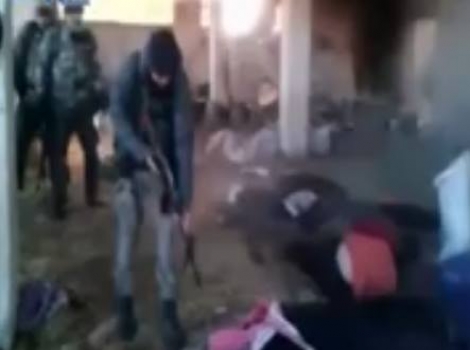 نشر نشطاء على مواقع التواصل الاجتماعية تسجيلاً مصوراً يظهر مجموعة من "الجهاديين" الأجانب ( يعتقد أنهم من الشيشان) يقومون بإعدام مجموعة من المواطنين السوريين العزل