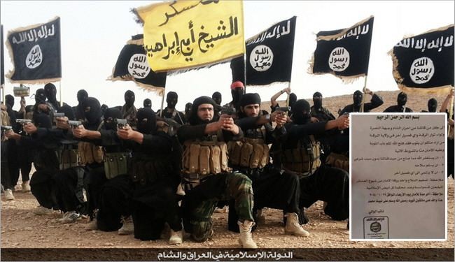 تناقلت معلومات صحفية ان تنظيم "الدولة الإسلامية في العراق والشام "او ما يسمى "داعش" التابع للقاعدة اصدر ما وصفه بـ"فرماناً إلهيا" باسم نائب والي الرقة دعا فيه الى التوبة وحدد تاريخا لذلك.