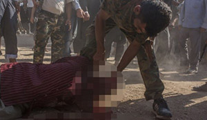 ارتكب مسلحو "الدولة الاسلامية في العراق والشام" جريمة وحشية بحق طيار سوري كانت المقاتلات التركية اسقطت طائرته فوق الاراضي السورية.