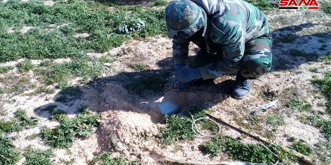 الجهات المختصة تفكك حقل ألغام من مخلفات إرهابيي “داعش” في مزارع تدمر