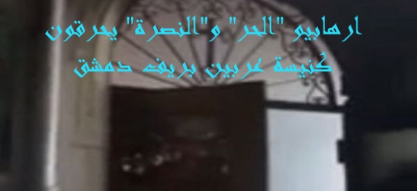 أقدم ارهابيو ما يسمى "الجيش السوري الحر" و"جبهة النصرة" التكفيرية إلى حرق كنيسة عربين ومحتوياتها في ريف دمشق.