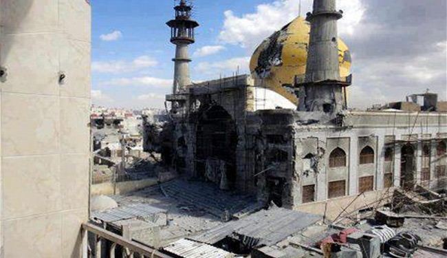 بالصور/ المجموعات الإرهابية تدمر قبة مقام السيدة سكينة بسوريا
