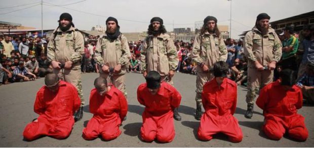 اعدم تنظيم داعش بالموصل 15 شاب رميا بالرصاص وسط حديقة بمدينة الموصل بتهمة التمرد والتواطؤ مع القوات العراقية.