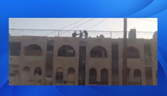 تناقلت مواقع التواصل الاجتماعي مقطع فيديو يظهر قيام جماعة "داعش" الارهابية على اعدام 4 اشخاص عن طريق اسقاطهم من اعلى بناية في مدينة الفلوجة.