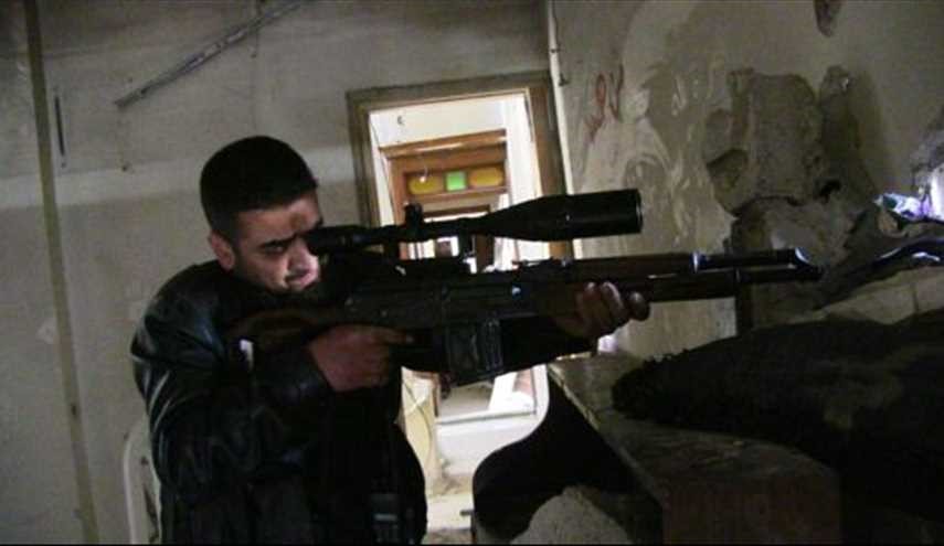 الجنود السوريون يقنصون "دواعش" خلف تلال رملية