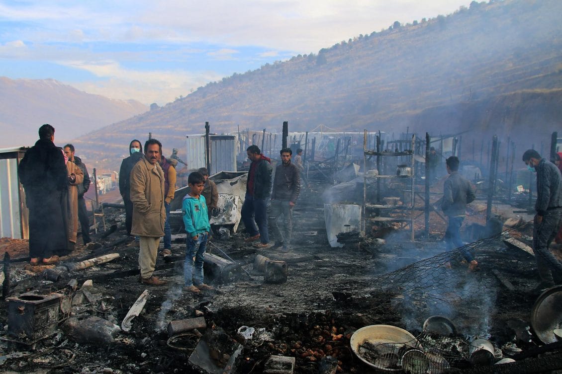 وفاة لاجئين سوريين في لبنان بعد حريق ضخم التهم 50 خيمة (صور)