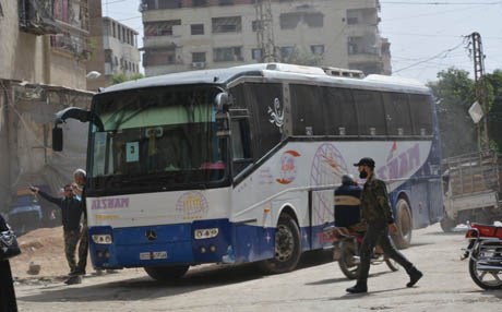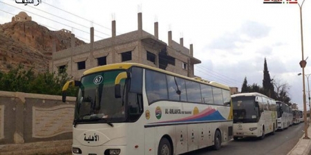 تم إخلاء الدفعة الثانية من مسلحي الفصائل السورية مع عوائلهم من بلدات: ببيلا، بيت سحم، ويلدا قرب العاصمة السورية دمشق، وفقاً لاتفاق إخلاء برعاية الجانب الروسي